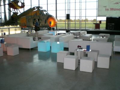 - Stand construction and decoration from tent construction to exclusive furniture up to the matching flower arrangements