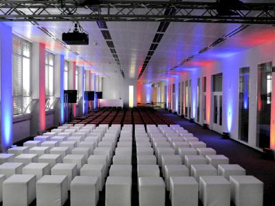 - Technical coordination and support from seminar acoustics to self-contained power-supply at off-locations to the integrated audio-visual design of your evening event